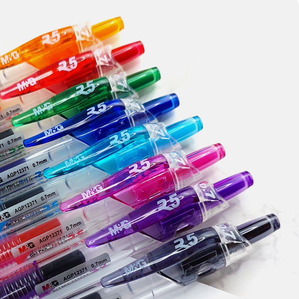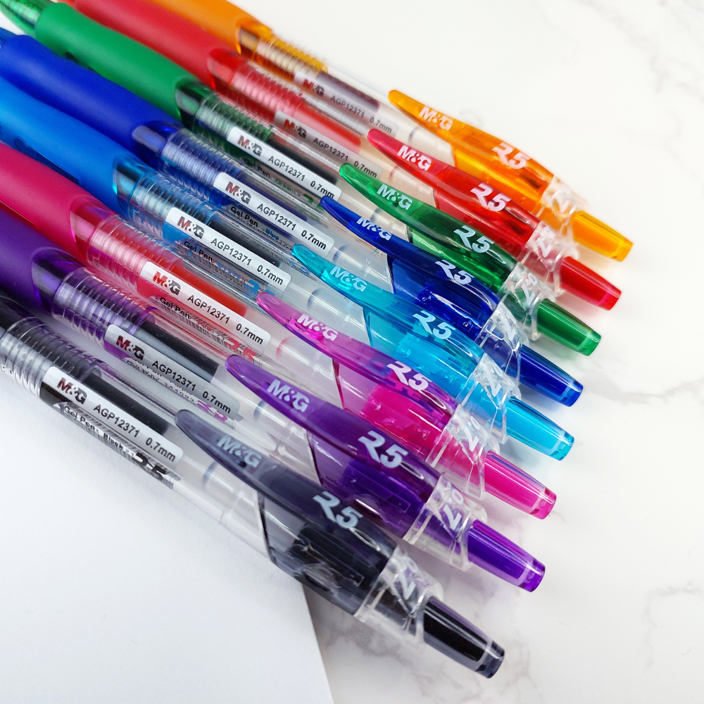 The M&G R5 Retractable Gel Pens are perfect for anyone who wants an easy-to-use writing tool that provides consistent ink flow while keeping things organized on their desk!
