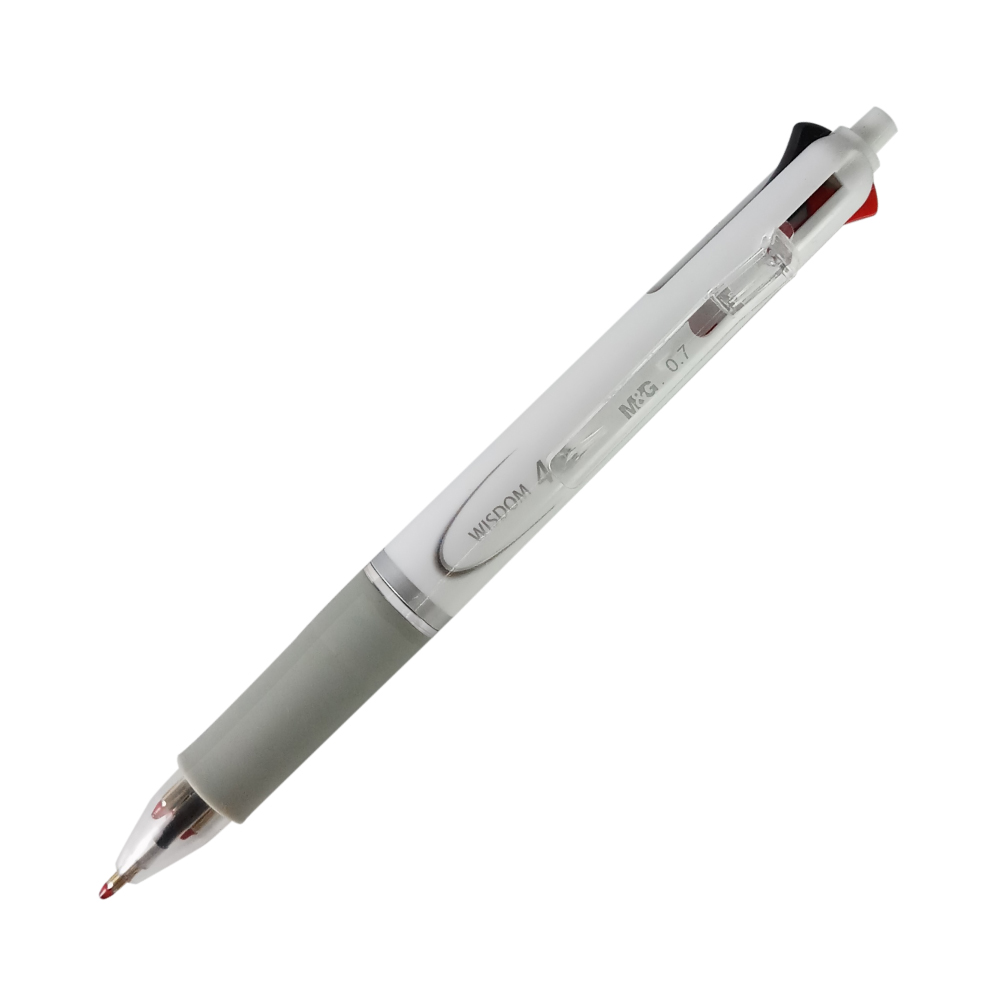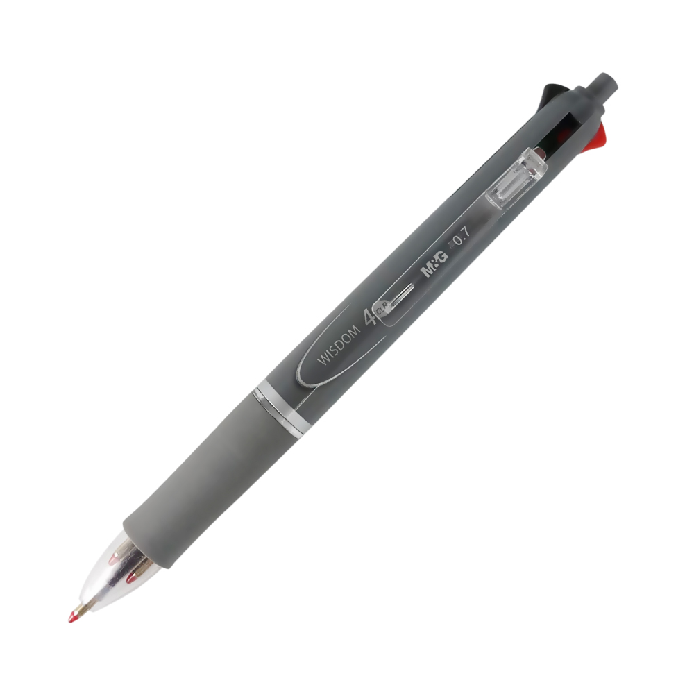 Introducing the ultimate writing companion - our 4-in-1 multi-coloured semi-gel ballpoint pen Wisdom 4. With the ability to write in black, blue, red, and green ink, this pen will have you covered for all your writing needs. The comfortable rubber grip ensures a seamless and comfortable writing experience, while the retractable design adds a touch of convenience to your workday. Our pen also features a colour-coded ink selector for easy ink selection. Designed with professionalism in mind, it is perfect for individuals who demand excellence in their writing tools.