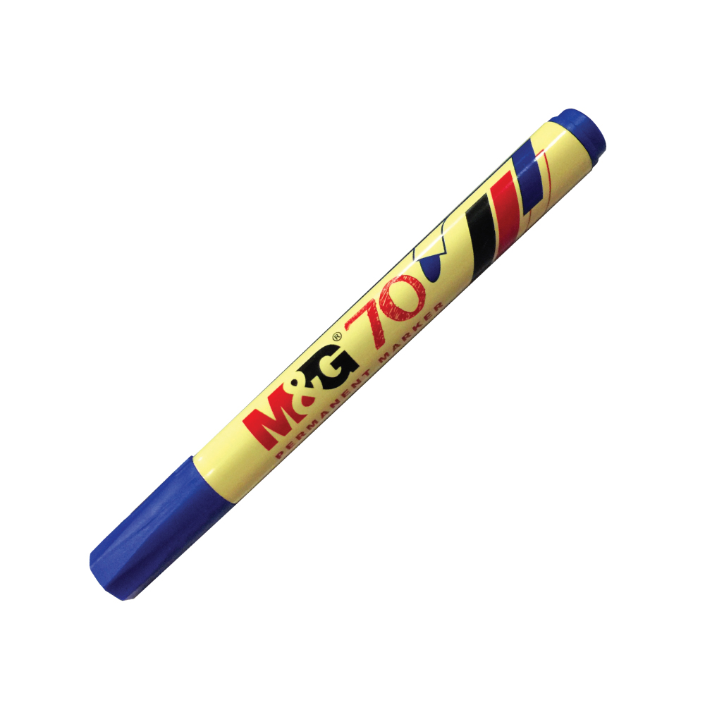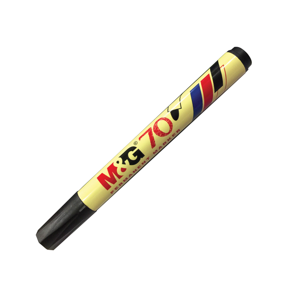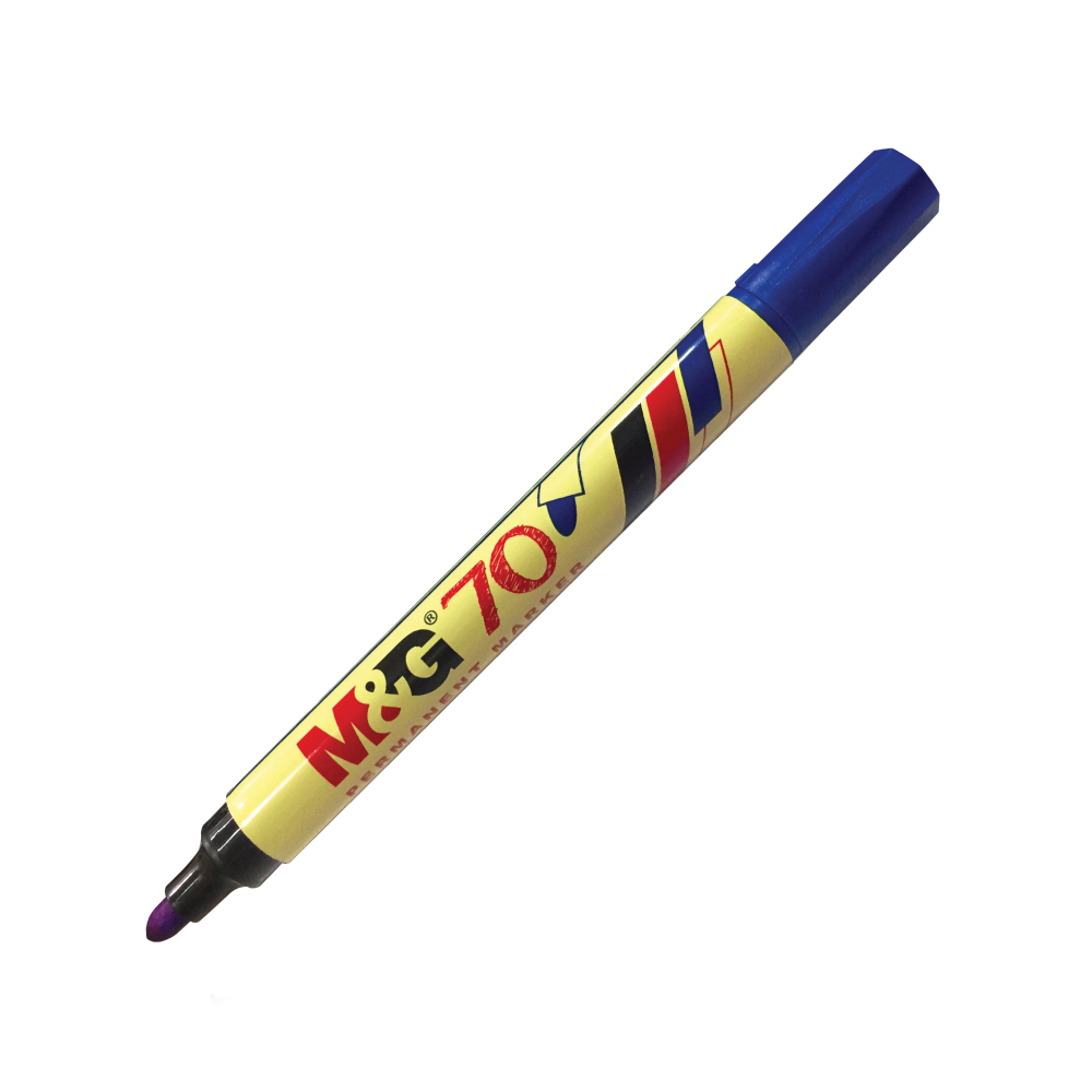 Our M&G permanent marker 70 with a round tip is designed for precise and accurate writing on various surfaces. It features quick-drying and waterproof ink that resists fading, making it ideal for long-lasting use. This type of marker is specially formulated to work on hard-to-mark surfaces like plastic, metal, and glass, providing permanent and reliable markings that won't smudge or smear.